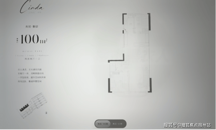 建面约100m²2房2厅1卫