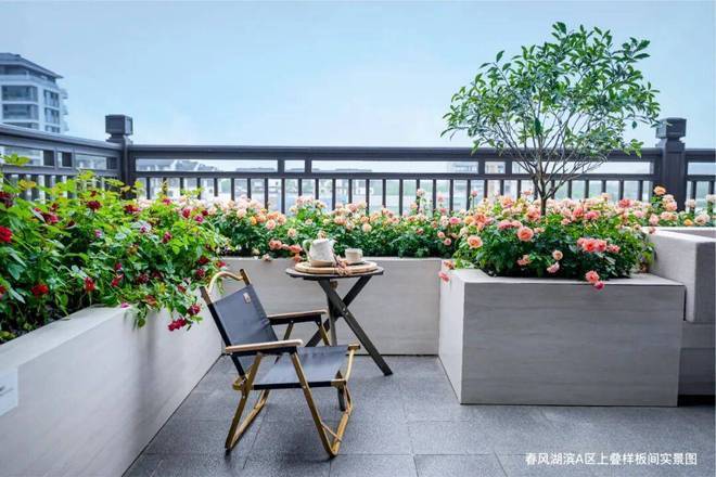 三层空中花园与室内客餐厅形成联动,无论是栽植瓜果花木,还是品茗、阅读、聚会,都是美好的“故事发生地”,花开时,还能邀朋友一起沉浸于“偶寄闲情阅繁花”的意境之中。