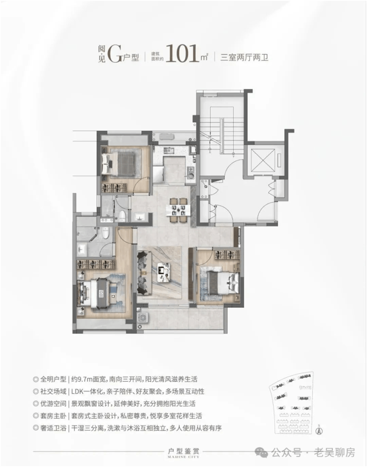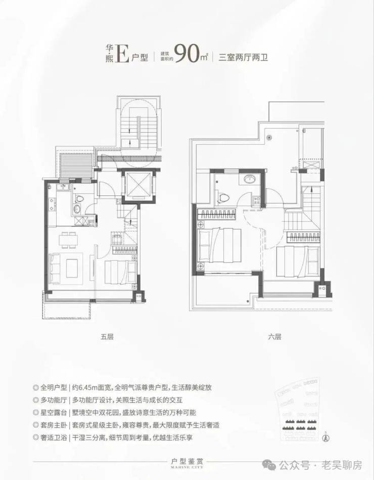 特别是这个E户型,建面仅约90㎡,对于想住叠加但预算有限的购房者来说,面宽约6.45米,上下动静分离带,是个不错的选择!