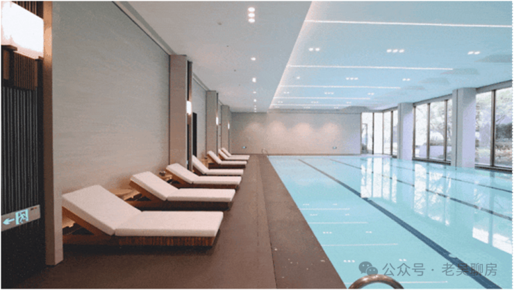 在下沉式景观庭院两侧,是不同的邻里空间。一侧是社区邻里中心,涵盖恒温泳池以及宽阔的健身房空间。当业主锻炼时,不被空间局限。透过落地窗,可以一边挥洒汗水,一边尽情欣赏庭院中的美景。
