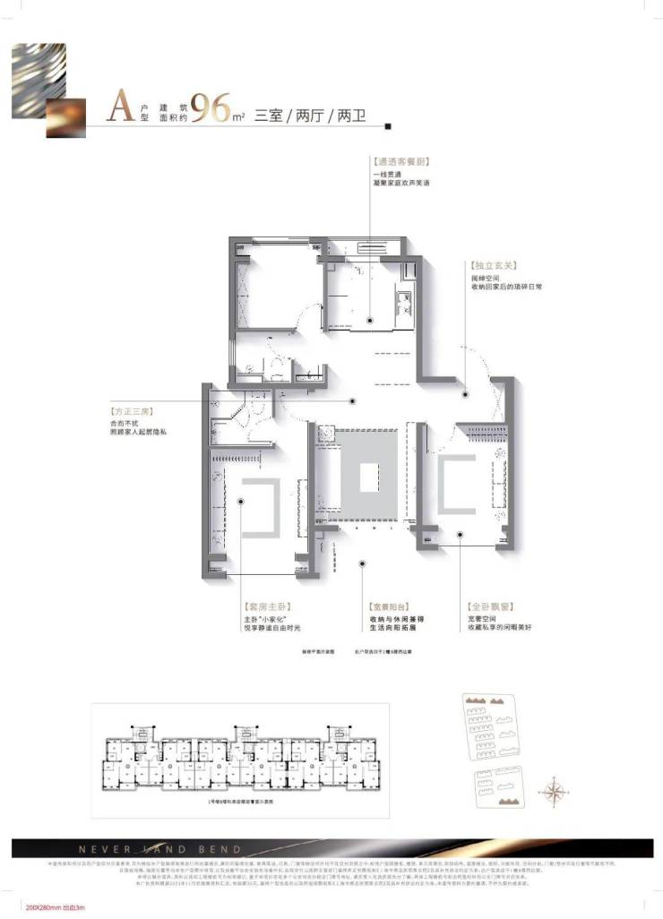 建面约96㎡精质三房,一步到位舒适人居:该户型方正格局、南北通透无连廊,既容纳二人世界的浪漫,也可将三口之家的幸福一并珍藏。