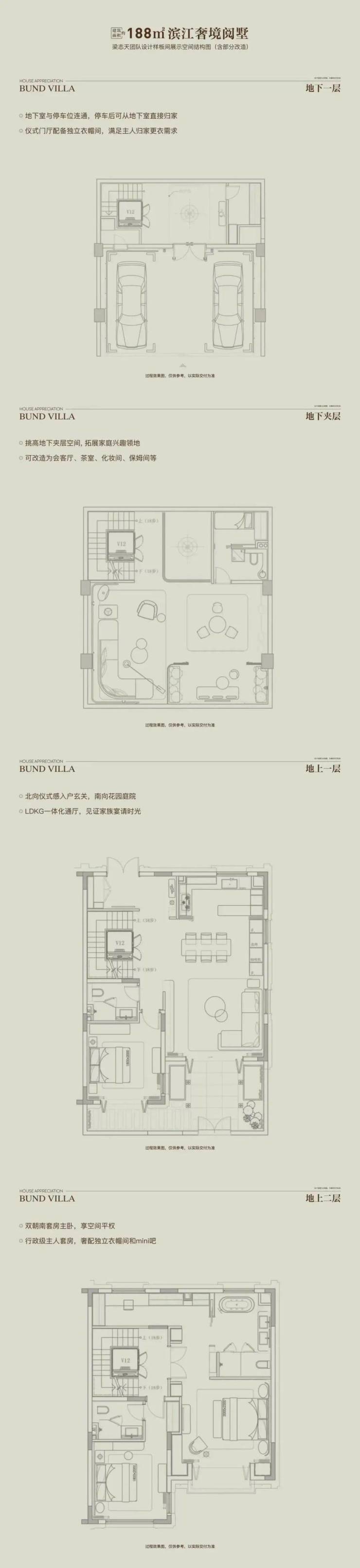 “全两层+会所”的形态革新、 花园露台地下室的全维空间、 大面宽短进深的奢适格局,重构别墅生活场景。