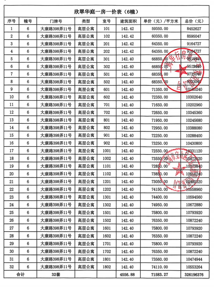 并且更重要的是,就在4月17日,项目收官房源也正式取证了!《房在上海》拿到了独家首发一房一价表!「大华·公园柏翠」6批次加推164套房源,均价65327元/㎡,建面约101-142㎡3-4房,火爆认购!