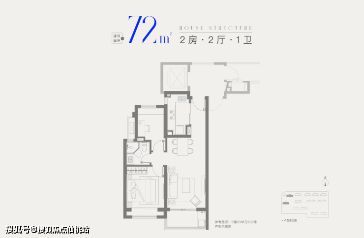 建面约72㎡2房1卫,做到双开间朝南+全卧室带飘窗,总价低至2字头,是刚需上车2房的优质之选。