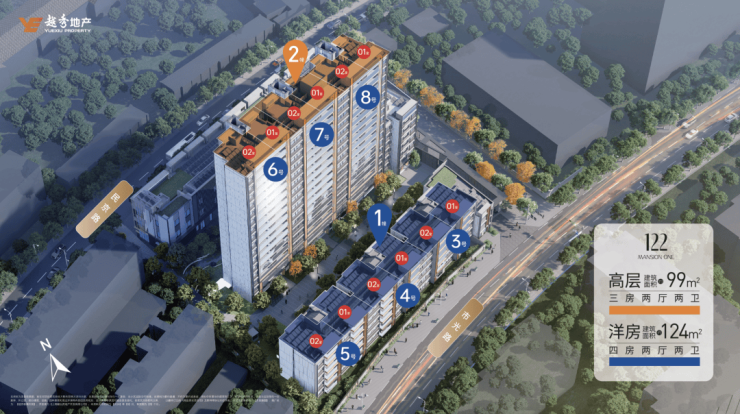 ⑤ 建筑面积约99-124㎡三到四房