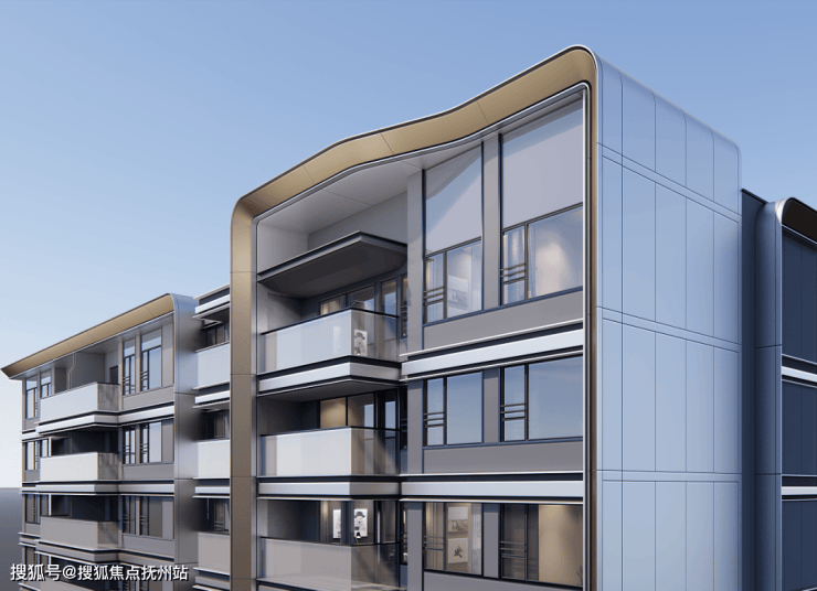 一园三堂的归家动线,象征着东方人文礼序。建筑风格造型,灵感源自金镶玉设计,提取其“曲”的形和白金配色应用到塔楼立面上,彰显项目的温和雅丽与尊贵典雅。