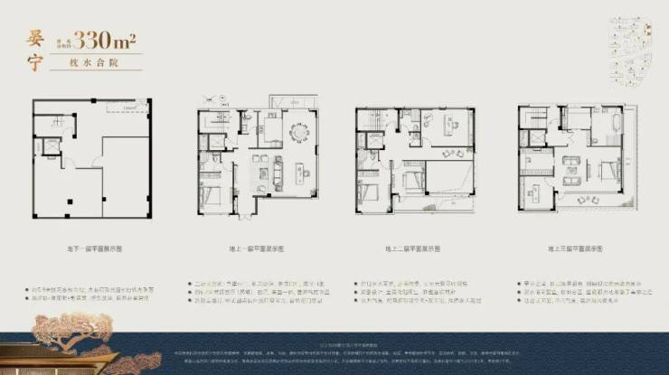 建面约200-360㎡合院,挑高客厅营造奢阔居住尺度,高窗墙比拉大室内采光、总统套房级主卧空间,满足三代同堂居住的需求。