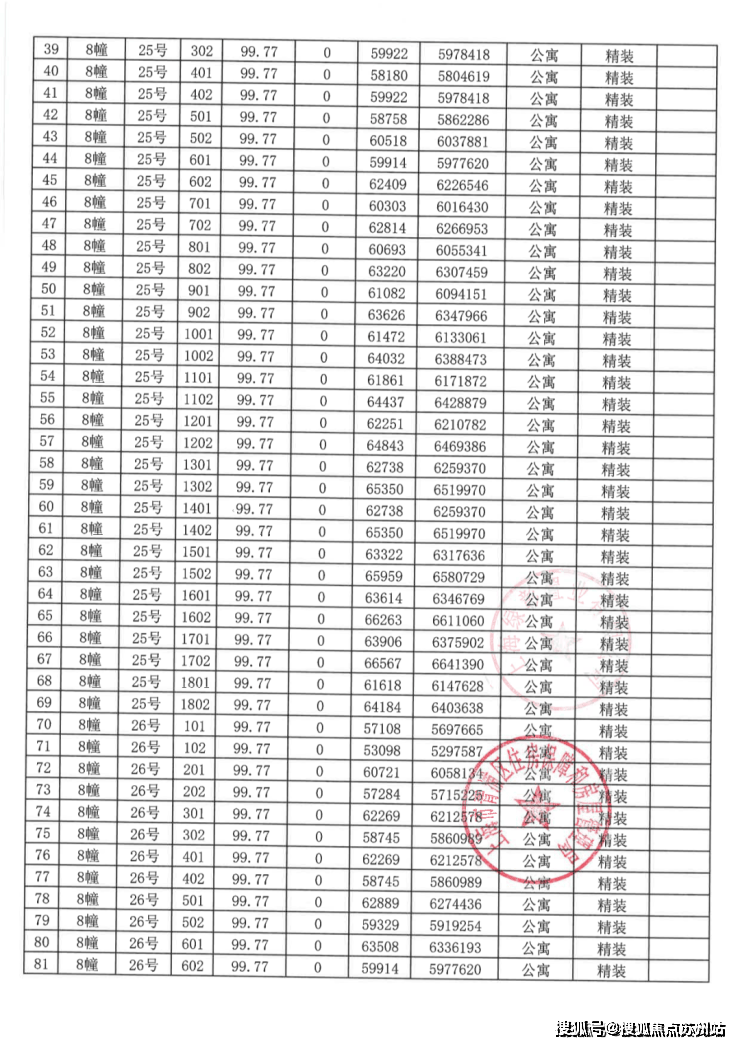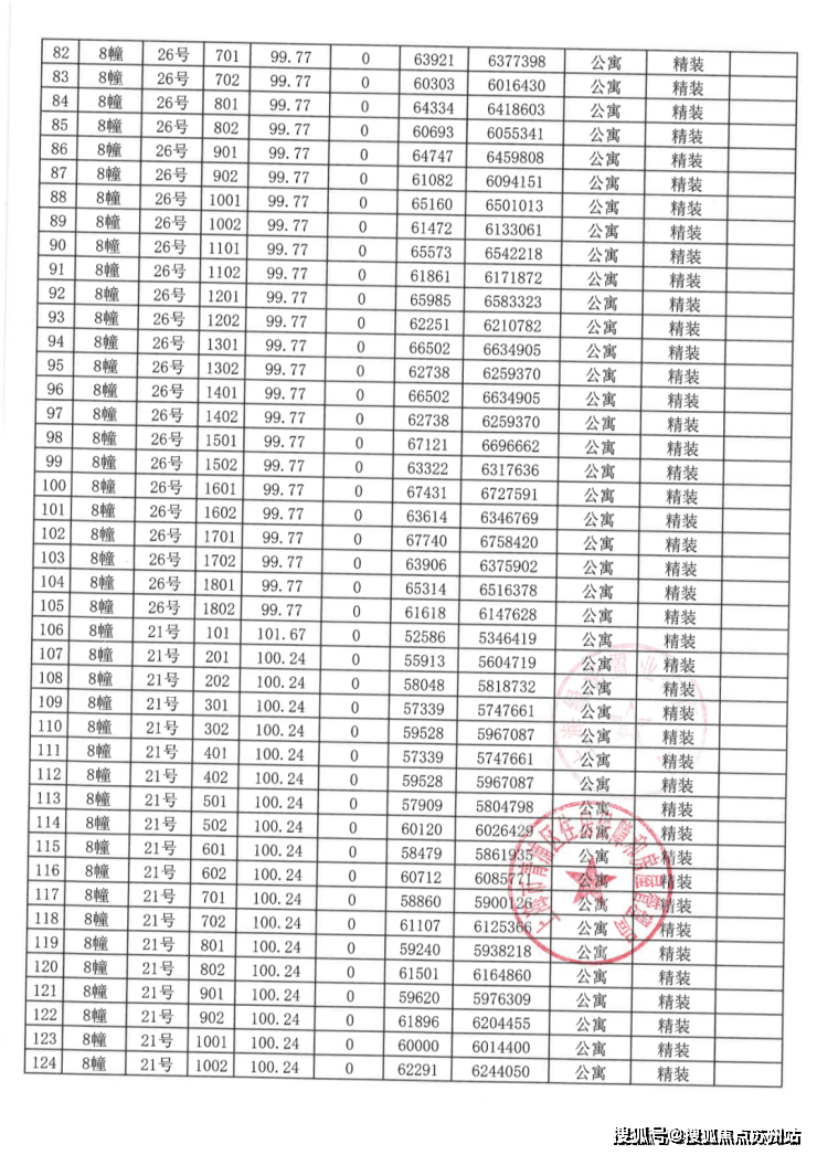 一房一价表:
