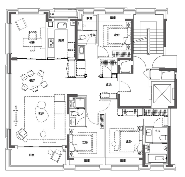 南次卧同样为套房设计,满飘窗扩展视觉体验;