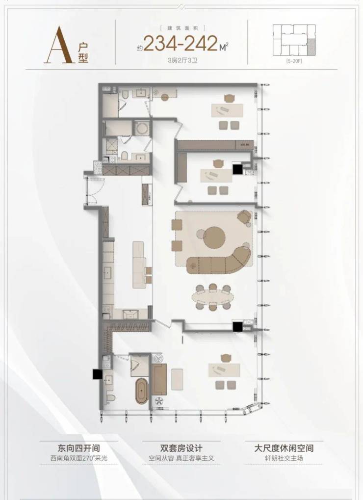 5️⃣户型优势:4.2米层高,全落地窗设计,多套房设计满足三代同堂