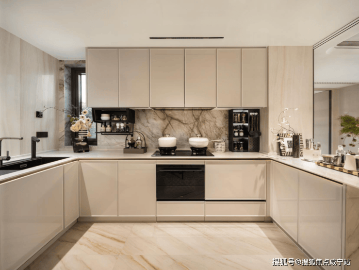 在中环麓岛的厨房里,项目为业主一次配齐了方太旗舰级的配置:集成烹饪中心(烟机+灶具+蒸烤箱)、集成净洗中心(水槽式)、母婴级净水机。