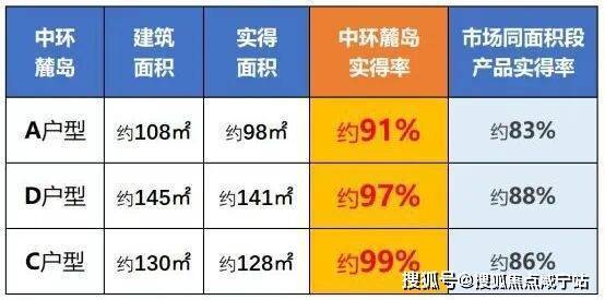 项目每个户型的实得率都比现有的新房都高出了约8%-10%,具体如下: