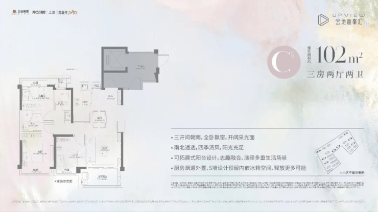 l功能性做到3房2卫,适配市场主流需求,主卧套房设计私密性舒适度兼具;