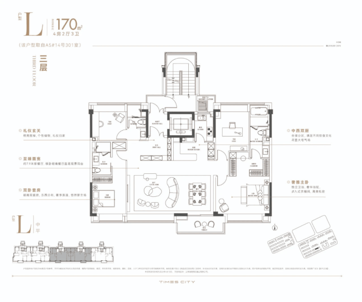 华润置地时代之城高层产品将百平上下的改善户型做出了轻奢级的居住体验,把约133㎡的改善四房做出了豪宅的尺度感。