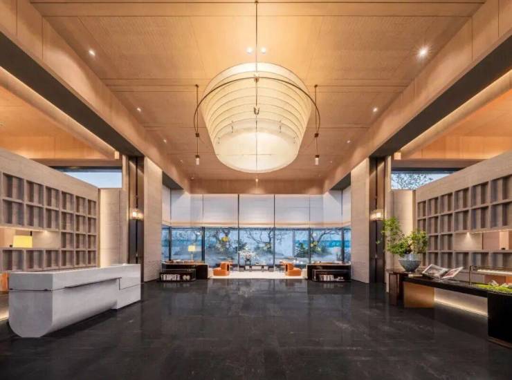 7号楼架空层以“睦邻空间”为定位,设置无界交融过厅、冥想区与花木小庭,在都市中营造一片自然绿洲;