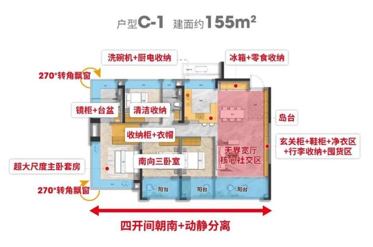 首先是户型:高附赠高实得率只是常规操作,伴随家庭周期可持续生长的户型你见过吗?