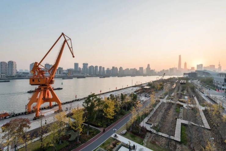 杨浦滨江有公共绿地约48.46公顷,滨江跑道、步道、骑行道现已全线贯通,使此地成为集合品牌策展、网红打卡、运动休闲等功能于一体的文创休闲带。