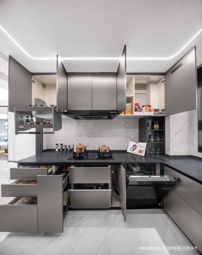 建发海宸售楼处电话:400-8787-740【预约☎】厨房收纳系统更是经过精心设计,吊柜收纳充分利用垂直空间,紧挨灶台的拉篮设计让调味品触手可及,分区抽屉让各类餐具、厨具各安其位,下厨更得心应手,台面更整齐美观。