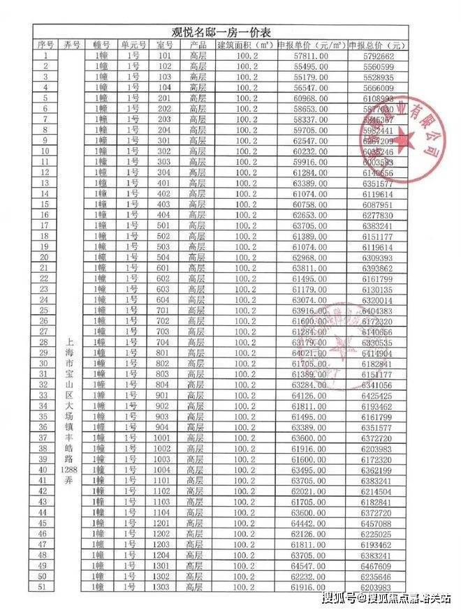 项目一房一价表▼