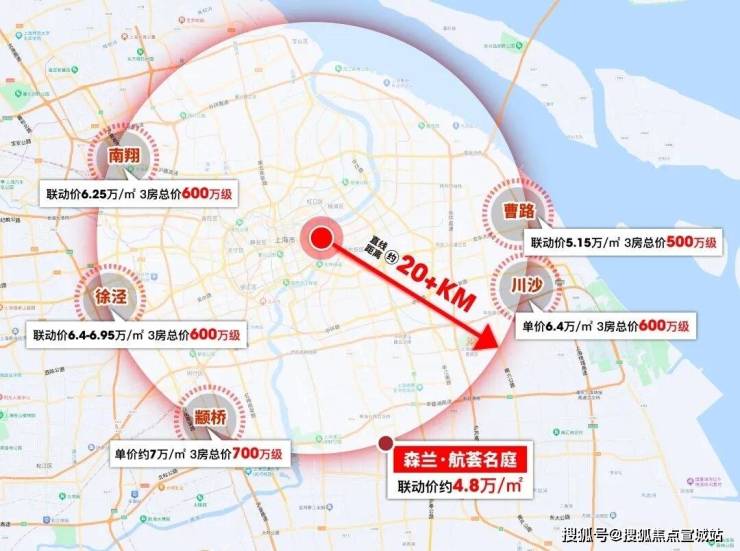 要是以陆家嘴为圆心,直线20公里画个圆。纵观和项目同半径的其他板块,它们和项目存在着接近约1-2万元/㎡的差距,折合总价接近100-200万元!