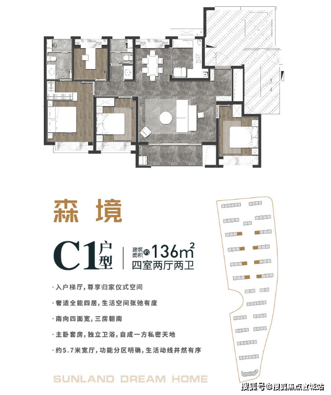 建面约100㎡户型和136㎡户型,更设有单独电梯厅,进一步保障业主隐私,提升居住体验!