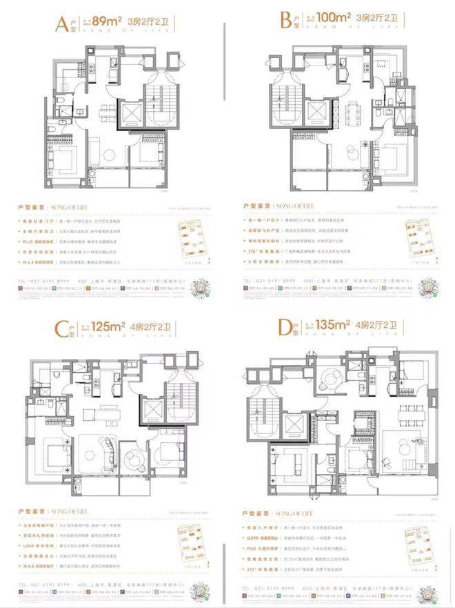 建面约88/99/125㎡3-4房255套