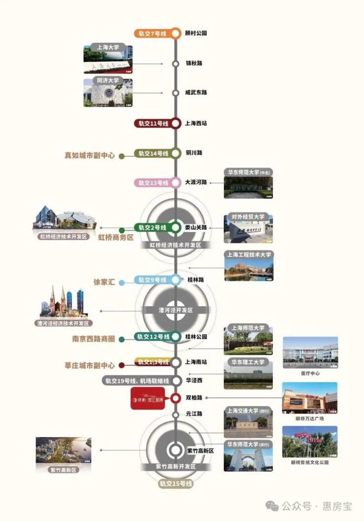 15号线双柏路站距项目直线距离约650米(数据来源于百度地图测绘),约20公里万亿产业带,贯穿上海南北3大科创园区,串联9所高校10个校区,与11条轨交快速换乘。