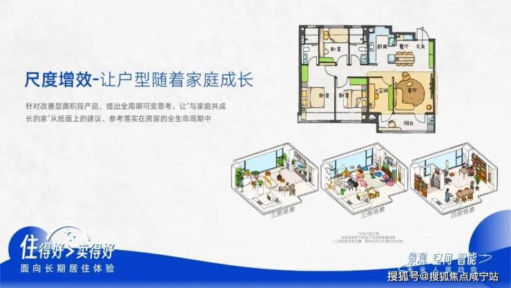 可变户型:以全户型全周期可变满足长期居住需求,与家庭共生长