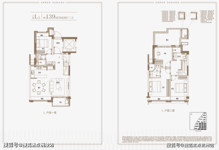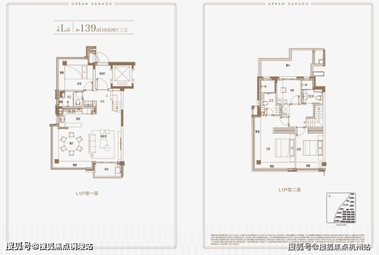 建面约139㎡上叠户型,三层是会客区,四层是居住区,阳台+露台+多个飘窗设计,附加空间非常大,在别墅类产品中实属罕见!