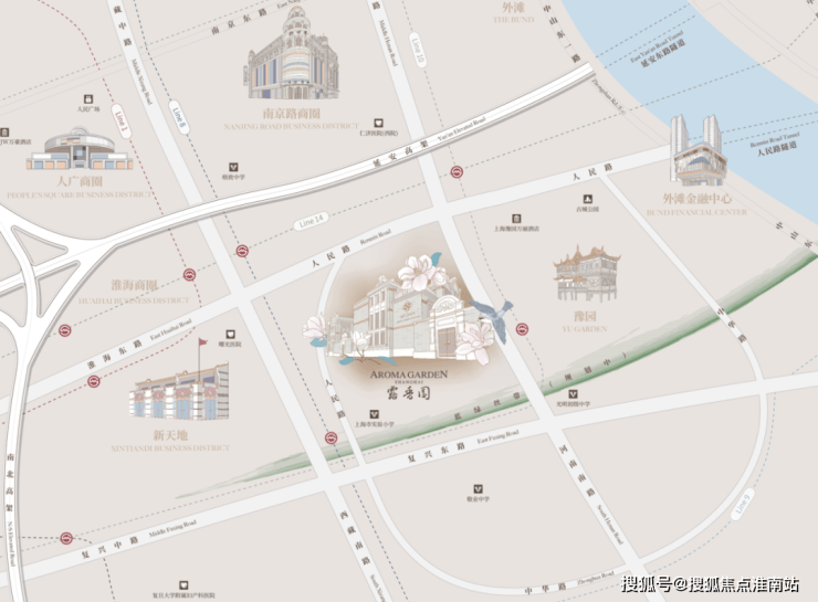 作为上海的绝对市心,露香园直线距离人民广场、淮海路、外滩、豫园等上海市地标性区域均不超过1.5公里,距离陆家嘴直线约2公里。