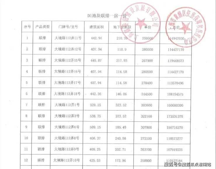 【一房一价表】