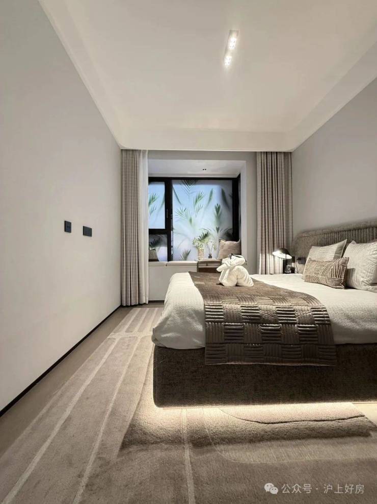 在今年上半年大家都在卷人字拼地板的基础上,外滩源著主卧地板升级为柳叶拼接,进一步做了升级: