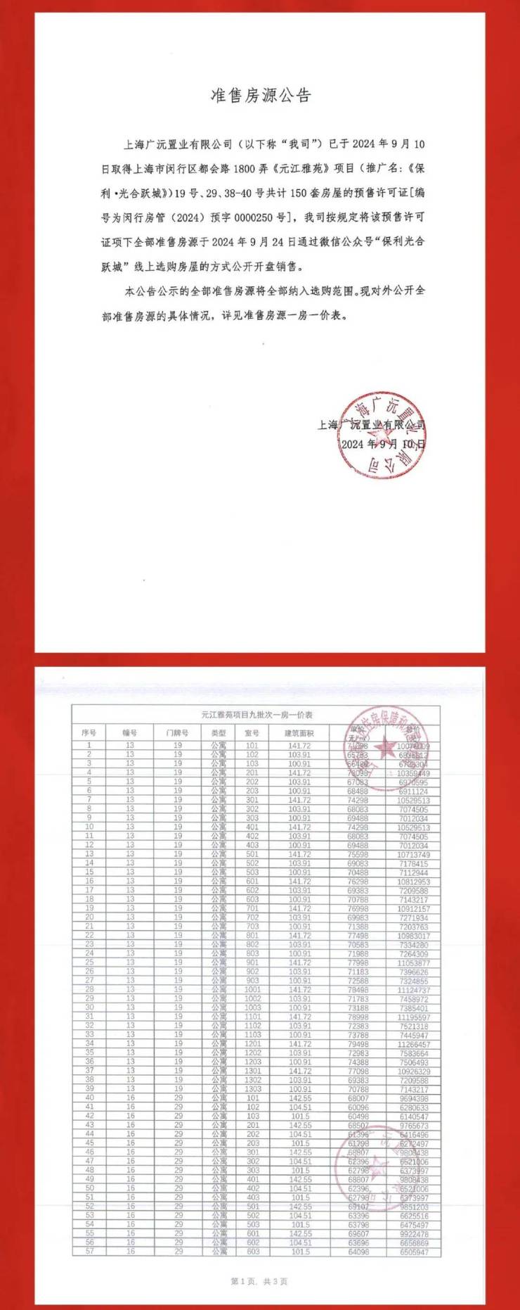 一房一价表: