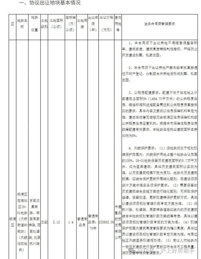 8月1日,杨浦滨江又传重大利好!根据杨浦规资局官网,杨浦区定海社区I9-01地块(大桥街道90街坊)历史风貌保护项目协议拟出让结果公示,中建壹品投资发展有限公司为意向用地者。