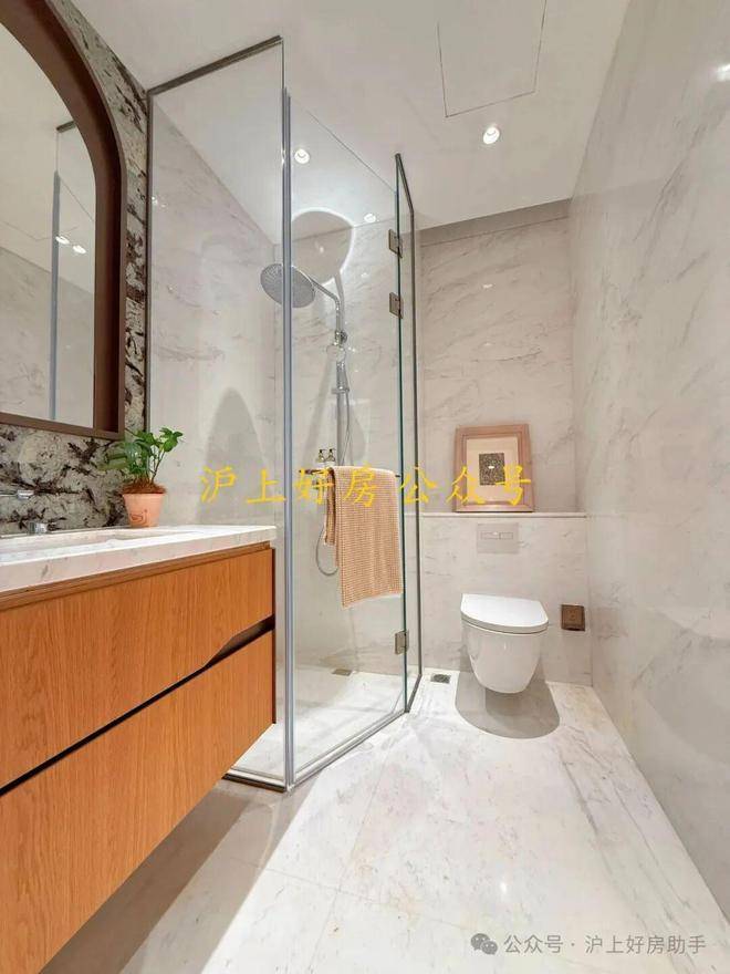 次卫则是采用不同风格,墙面统一采用米洞岩板、地面为深咖色瓷砖,黑金配色风格区别于看多了的海派设计,眼前一亮: