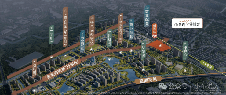 轨交:地块与地铁14号线终点站封浜站的直线距离不到500米,坐一站到乐秀路,未来可以换乘嘉闵线(在建),连接大虹桥、七宝、春申等板块。