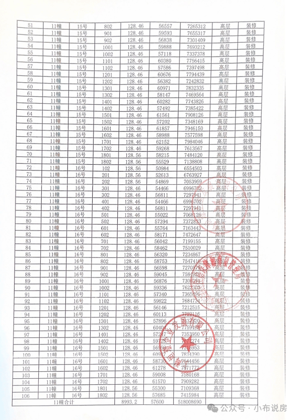 附一房一价表!欲购从速!