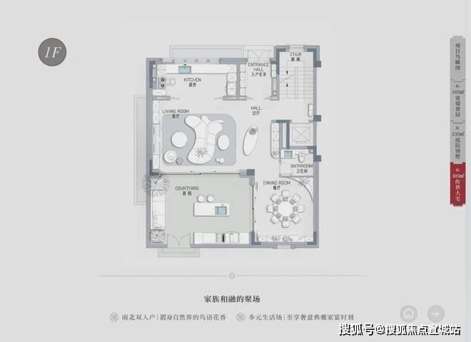 户型面积:主推建面约 185-305㎡的别墅。