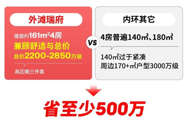 外滩瑞府今日取证,明日开启认购,推出建面约 121/161㎡3-4房,据悉161㎡4房约2200万起,这个定价相当炸裂,旁边新房4房总价2800-3000万!