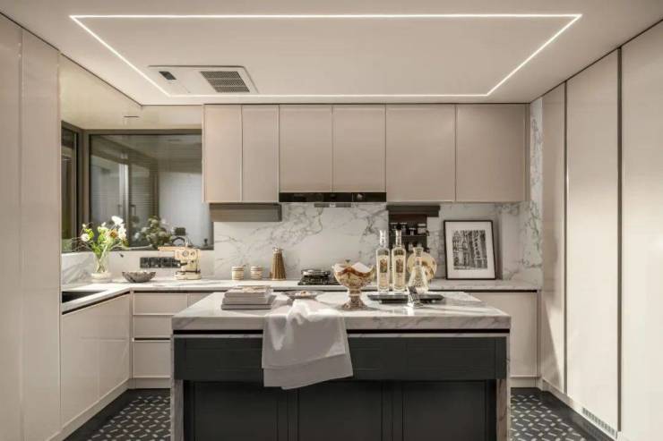 另外,在整体动静分区的格局下,U型厨房不只是单纯的烹饪场域,更融入“社交属性”,让人们在烹饪的同时,也能与客厅的家人交流。