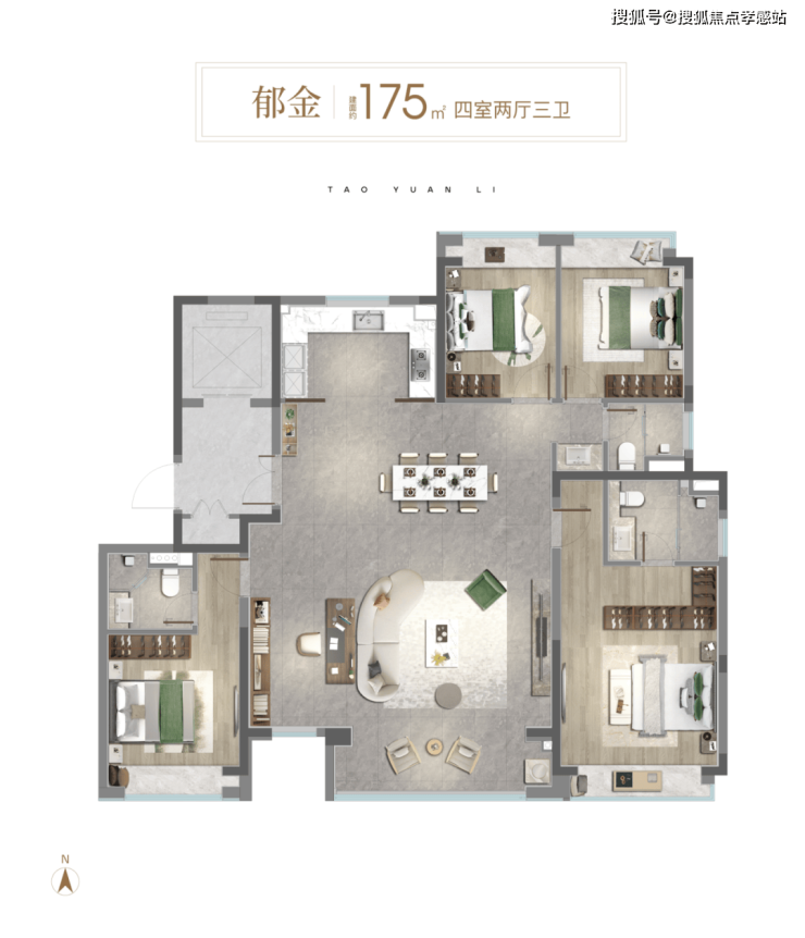建面约166㎡的宽奢四房设计,南向4.5开间设计,在大横厅设计的同时做到了餐客厅空间独立,将每一寸空间妥帖利用。