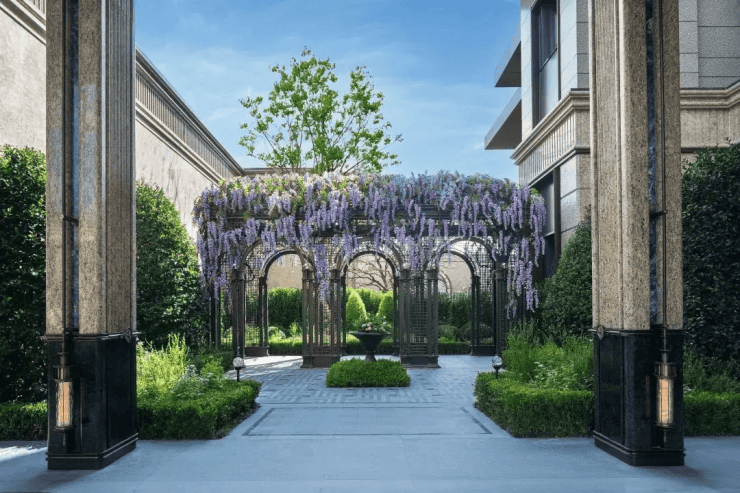 社区园林 :四重立体园林体系,融合江南园林“三进归家”礼制,设风雨连廊、水榭回廊、珍贵苗木(乌桕、鸡爪槭)