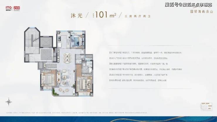 所以,虽然户型的建筑面积是约101㎡的3房,但整个空间的尺度感却能匹配改善型的宽绰3房。