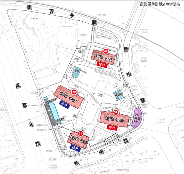 1#地块:分为南北两块:南块,东至新桥路,南至新闸路,西至成都北路,北至成都北路1012弄;北块,东至新桥路,南至新桥路51弄,西至九子公园,北至南苏州路。未来主力产品为超高层住宅。