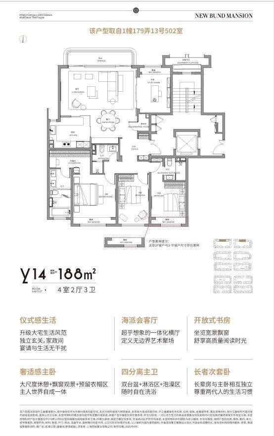 极致奢华:针对海派精英生活秩序再设计,双向私密电梯入户、家政处理间、无界会客厅,媲美大平层的尺度感,见证豪宅待客礼仪升华。