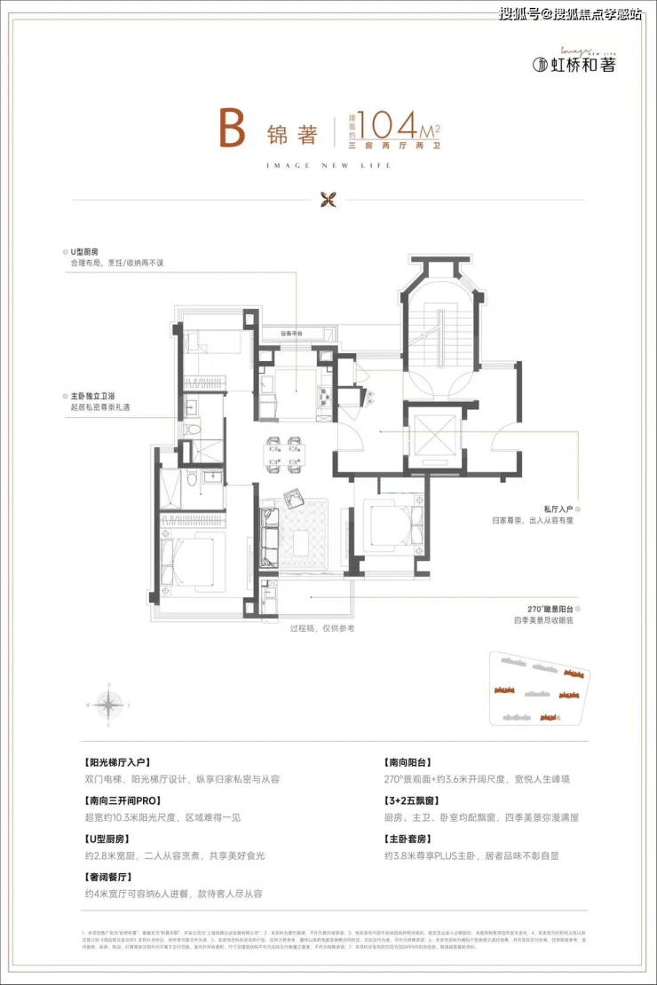 【保利虹桥和著】售楼处预约热线:400-8855-420📲建面约104㎡3房,在建面94㎡小3房优点上,又进一步升级了尺度感,约10.3m的南向面宽,为室内带来了出众的采光面和尺度感,这个户型无论从实用性、尺度感,亦或是视野、采光、私密性来说,都做得相当优秀。
