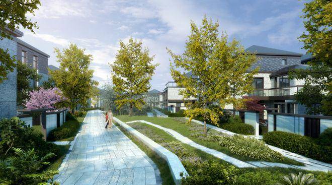 建筑外观上是新中式格调,以黑色面瓦为黛顶,整体线条简洁明快。0.86容积率,带来更低的人居密度、更好的采光,还意味着将更多留白空间给了景观。比如打造一系列公共设施,石凳、石桌、洗手钵、锻炼器械等,满足业主的休闲娱乐需求。