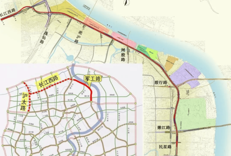 作为上海市重大工程,「中环北抬」通过军工路、长江西路、沪太路三条快速路互联,重构浦西北交通骨架。这项工程不仅延伸中环线,更通过立体路网打造串联宝山、杨浦、静安的「城市交通脊梁」,竣工后将形成复合功能交通带,推动沿线板块价值升级。