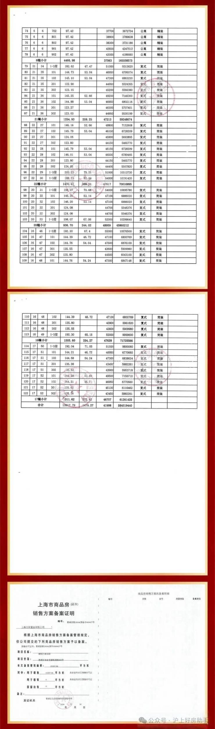 项目一房一价表: