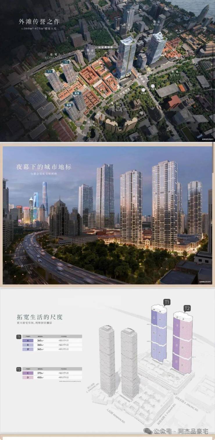 项目其包含4幢150米超高层地标大宅,首期主力户型为270㎡-645㎡城市封面级天际大平层,于上海城心黄金地段呈现约11万方外滩传誉之作。